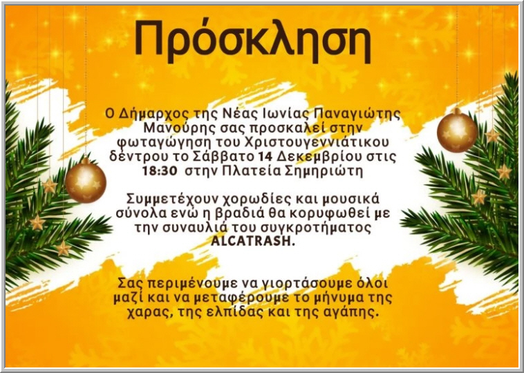 Η Φωταγώγηση του Χριστουγεννιάτικου δέντρου στον Δήμο Νέας Ιωνίας Αττικής (14/12/2024) |