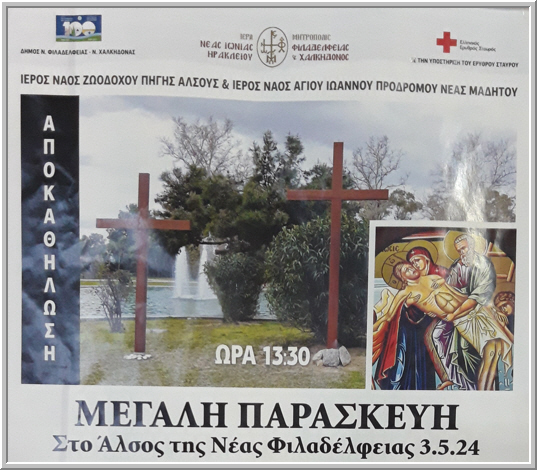 Η «ΤΕΛΕΤΗ ΑΠΟΚΑΘΗΛΩΣΗΣ» - Μεγάλη Παρασκευή (03/05/2024) στον Ιερό Ναό Ζωοδόχου Πηγής (εντός Άλσους) |